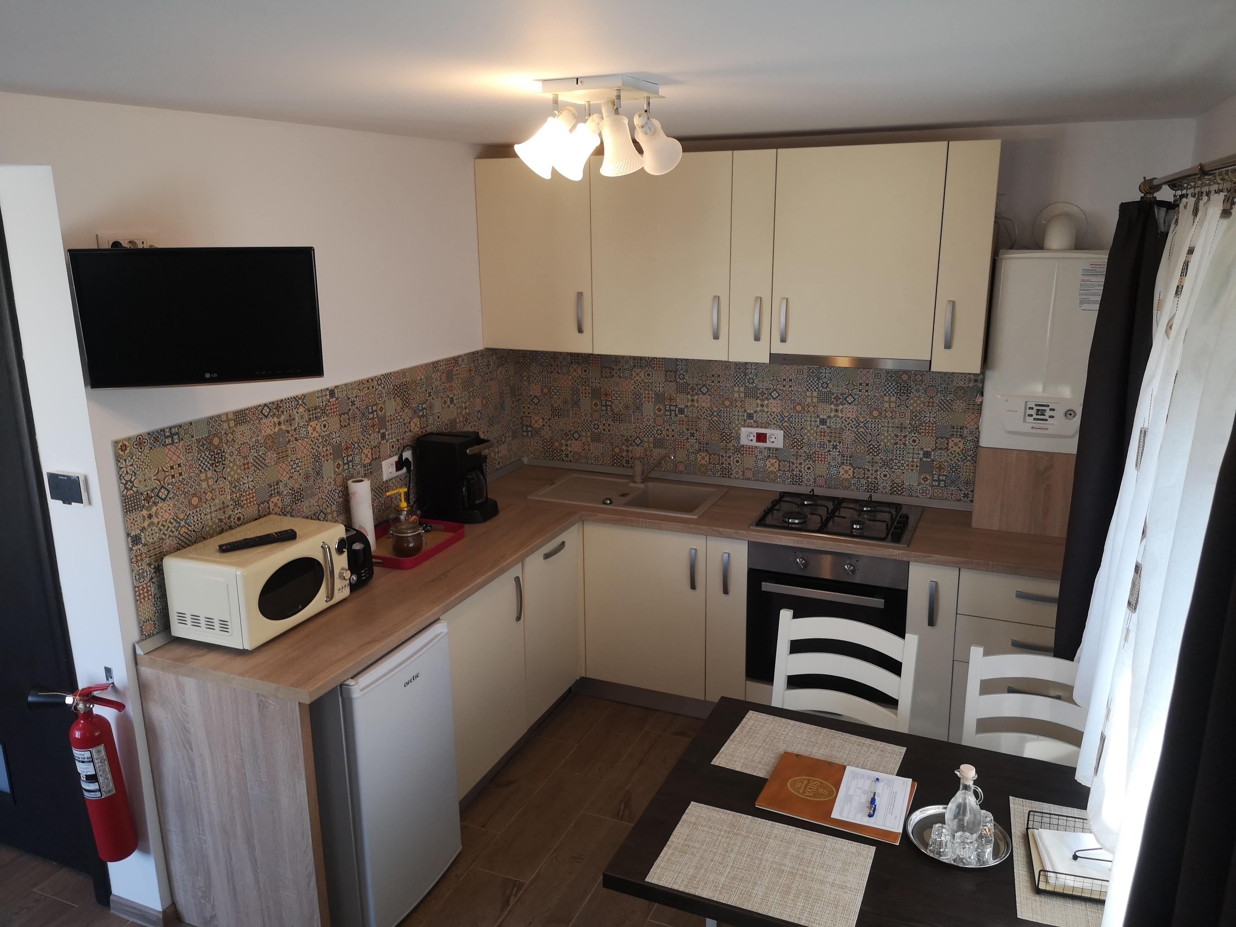 Apartamentul este amplasat în cladirea din spatele curtii avand vedere spre curtea interioară . Apartamentul are o suprafata de 45 mp si este compus din living , dormitor cu pat matrimonial și baie . În living este amenajată într-un colț o chicinetă complet utilată . Deasemeni tot in living este amplasată o canapea și o masă cu scaune . În apartament există televiziune prin cablu si acces wireless la internet oferit gratuit clientilor nostrii. Apartamentul a fost amenajat ca sa poata gazdui maxim 2 adulti .